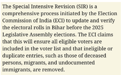 - Non-Disclosure: The ECI’s refusal to release the full list of deleted names and reasons for their removal makes it difficult for political parties and the public to verify the legitimacy of the process.