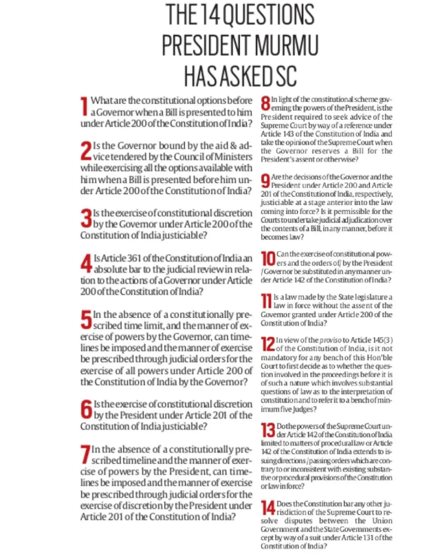 - Article 143 of the Constitution: This constitutional provision allows the President to seek the Supreme Court’s opinion on constitutional matters. The current reference is a result of President Murmu’s decision to submit key queries following the Court’s April 2025 verdict.
